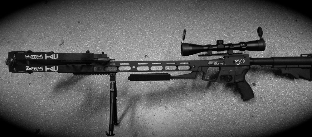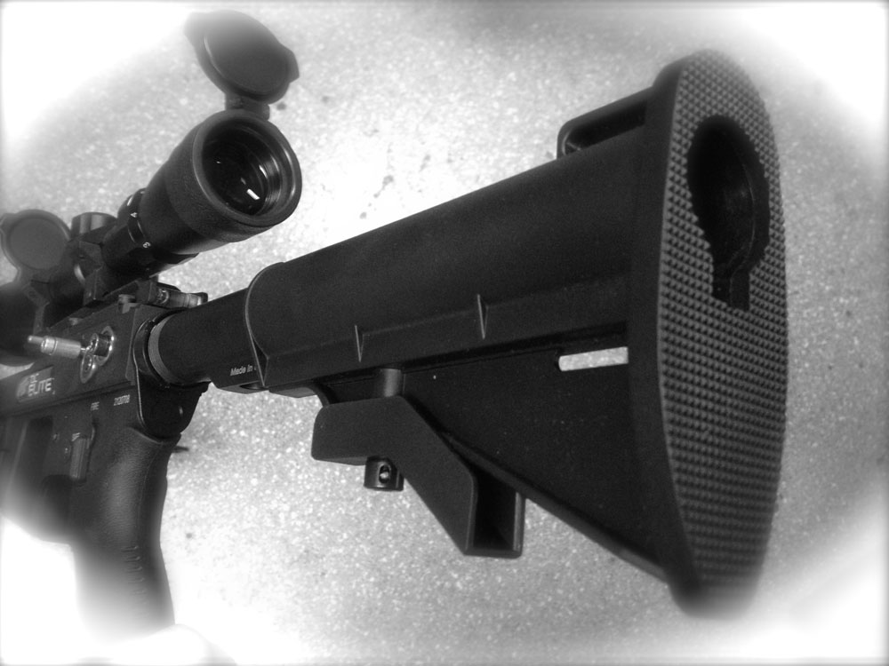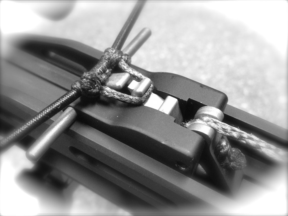 Плюсы схемы понятны: есть возможность подогнать правильный вылет стрелы для любых типов наконечников. Кстати, стрелы для этого арбалета подходят только фирменные с четырьмя перьями – они более стабилизированы в полёте. О конструкции PSE TAC Elite можно говорить много, ведь он построен на базе знаменитой своей точностью винтовки М16. Как и в стволе этой винтовки, основная линия расположения стрелы, блоков и полочки в арбалете находятся на одной линии плечевого упора, что исключает любое подкидывание во время выстрела. Конструкция предохранителя и вертикальная насечка на спусковом крючке для лучшей чувствительности так же перекочевали с М16. ![]() Несмотря на то, что арбалет довольно тяжёлый, каким и должно быть дальнобойное орудие, в прикладке он удобен за счёт: → удобного хвата → перемещающегося на планке Пикатинни цевья → ортопедической ручки → регулируемого по длине плечевого упора ![]() PSE TAC Elite не имеет стремени для ноги. Вместо него установлены резиновые заглушки, играющие двойную роль, как упора о землю, так и для снятия лишних вибраций.