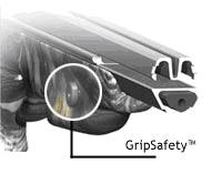 Вспомогательный предохранитель имеет кнопку на цевье, которая расположена с учетом того, чтобы обеспечивалось правильное расположение руки для защиты пальцев. Это позволяет предотвратить применение предохранителя перед выстрелом, при этом предохранитель устанавливается в положение «fire» за некоторое время до выстрела. Невозможно нажать на спусковой крючок, не затронув при этом кнопку «GripSafety».