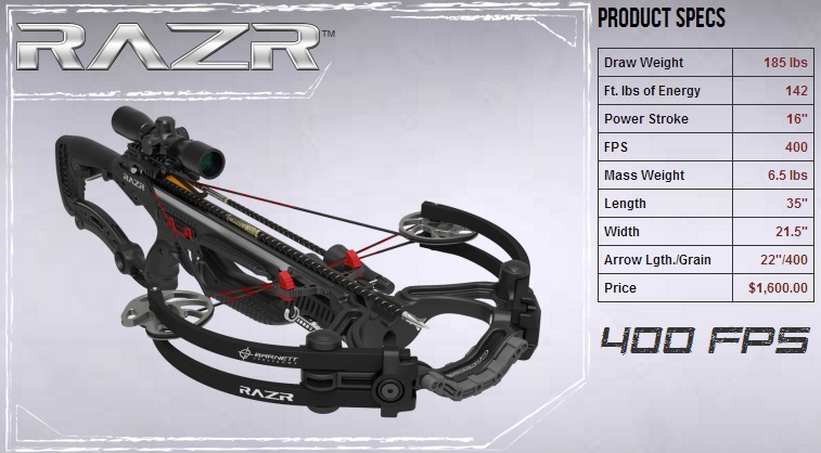 Это ключевой момент, ведь чем меньше вес стрелы, тем больше скорость. В данном случае замер у арбалета BARNETT делали стрелой, весом 400 гран, а у TenPoint 420 гран. Если на RAZR поставить стрелу по тяжелее, то и разница в скорости будет гораздо меньше.