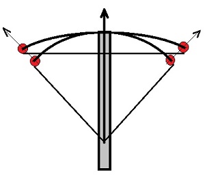 При выстреле из арбалета его плечи совершают движение от состояния взвода, до состояния, в котором они находились до его совершения. Если мы, как указано на картинке, проведём вектор направления движения плеч, то можно будет понять, какая у арбалета будет отдача, больше или меньше.
