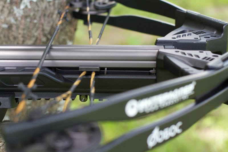 То есть между планкой, на которую установлен прицел, и алюминиевой направляющей есть две подвижные части —пластиковый корпус арбалета и замок. Такая конструкция не даёт уверенности в точном выстреле, особенно если на арбалете будут боевые плечи с большим усилием, а на планке закреплён тяжёлый ночной прицел.