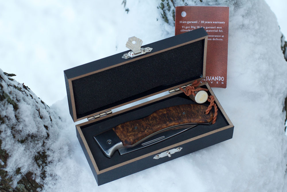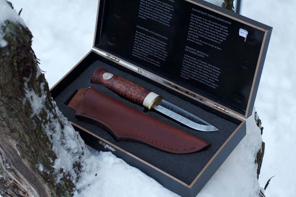 ![]() Финский антураж: натуральная кожа и карельская березаОсновным материалом для рукояти служит карельская береза, обработанная с учетом всех анатомических особенностей строения руки человека, что обеспечивает удобный и уверенный хват. Особый шарм ножу придают вставки, выполненные из натурального рога оленя и латуни. ![]() Все свои ножи Karesuando комплектуют высококачественными кожаными ножнами, которые обеспечивают удобное хранение и ношение. Некоторые модели комплектуются ножнами со вставками из карельской березы и рога оленя. Все они оснащаются удобным подвесом на ремень. Большая часть ножен имеет низкий подвес для удобного извлечения ножа в холодное время года из-под верхней одежды. ![]() Эксклюзивный шведский нож – лучший подарок для охотника |