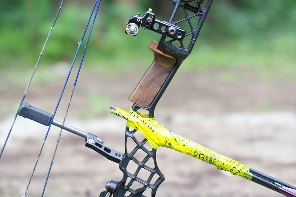 На помощь пришла незаменимая в таких ситуациях клейкая лента. Две стрелы, примотанные скотчем, помогли зафиксировать стабилизатор к рукоятке лука. Я не успел пристрелять лук и на первых мишенях попал три пятерки. Мне повезло, что работа лука не изменилась, и ценой небольших потерь прицелы были найдены, а дальнейшая стрельба, в целом, прошла без проблем. Я смог удержаться на втором месте по итогам стартовых кругов.