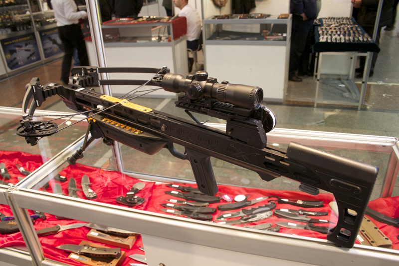 Среди представленных направлений на выставке были луки, арбалеты и комплектующие к ним, а также многообразные линейки ножей и инструментов.