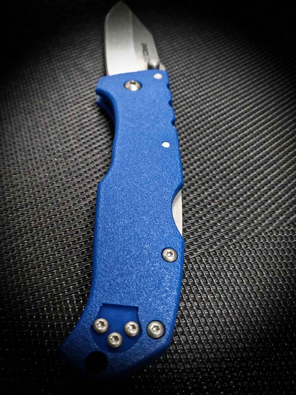 Cold Steel сильно сэкономили на шайбах: большие пластиковые штуки. Ось как будто пушистая, раскрытие происходит очень медленно. Lockback никогда не будет самым быстрым ножом в мире, но эти дешевые шайбы действительно дрянь. Если нож разобрать ( и я могу просто щелкнуть и открыть его сейчас), их можно заменить. Здесь идеально было бы установить шайбы из фосфорной бронзы. Даже для ножа ценой 30$ это не слишком дорогое пожелание.