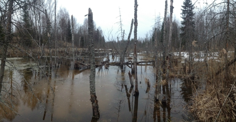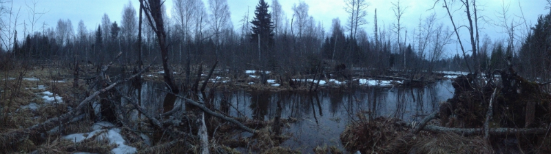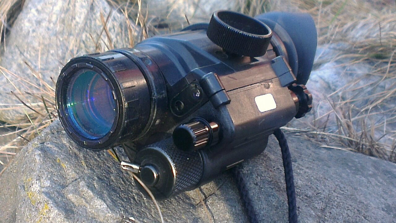 Тепловизор отлично прорисовывает коряги на фоне чёрной воды и позволяет сразу определить наличие тёплой цели в зоне видимости. Он сразу показал нам наличие чего-то живого на болоте. Это были две светящиеся точки вдалеке. Сначала мы подумали, что это мыши, но спустя несколько минут наблюдения, решили, что это две утки плавают парами метрах в 100 от нас. Отложив тепловизор, мы продолжили ожидание. Тест прибора ночного видения PVS-14А движение на болоте всё продолжалось, слышны были и всплески воды. К тому времени мы уже однозначно решили, что мыши парами бегать не могут и идентификация прочно остановилась на утках.