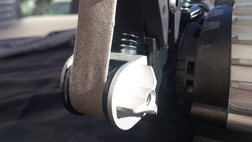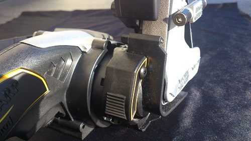 ![]() Изменилась система установки углов заточки, теперь они могут быть любыми в диапазоне от 15 до 30 градусов. Регулировка установки угла заточки производится плавно при помощи отградуированного регулировочного колеса. ![]() Что еще замечательного в новой электроточилке от компании Darex, так это то, что теперь не надо во время заточки держать клинок навесу, - нож можно фиксировать на специальном ролике EDGE GUIDE. ![]() Главный рычаг для смены насадок и их положения теперь не надо сдвигать в сторону, на него достаточно просто нажать и выполнить нужную вам операцию. Рычаг сделан массивным, под большой палец, и в работе очень удобен. ![]() Немного изменился механизм натяжения ленты, он стал проще и удобнее: достаточно приподнять ролик и поставить ленту на место. Саму точилку необязательно держать, её можно прикрутить к столу при помощи болта. Для этого предусмотрено специальное отверстие с гайкой.
