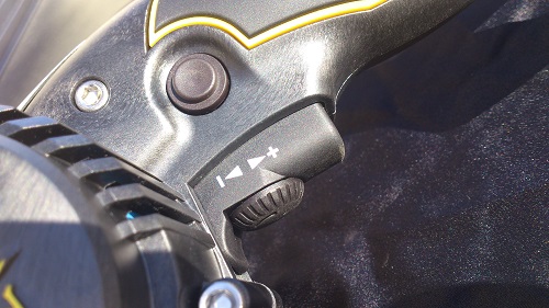 ![]() И, пожалуй, самое приятное дополнение - это наличие фиксатора кнопки. Теперь, чтобы точилка работала, не обязательно всегда жать на кнопку, достаточно один раз нажать и зафиксировать её. Скорость же выбирается регулятором.