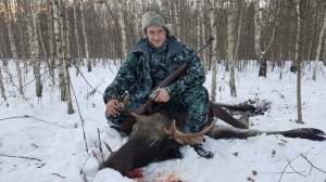 Раннее утро прошло, появилось солнышко, настроение улучшилось ещё больше. Вот и показались загонщики, а за ними и машина, собирающая охотников – первый загон закончился добычей одного лося-телка.