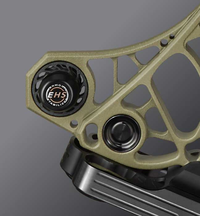 Установка виброгасителя в то или иное место в компании Mathews происходит при жестком тестировании каждой позиции. Уже второй год мы наблюдаем выносной демпфер установленных вниз райзера, что на охотничьих моделях, что на спортивных, чтобы уменьшить вибрацию и шум после выстрела. Новая расширенная позиция демпфера также обеспечивает дополнительный баланс при полном растяжении лука.