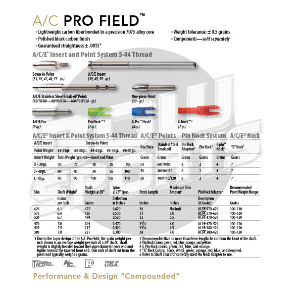 Древки для стрел AC PROFIELD, размер 380, C2, 12 шт в комплекте