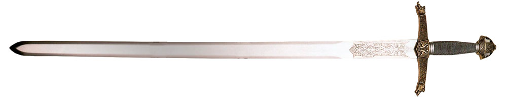 Так, у нас можно купить меч Робин Гуд с гравированным клинком и рукоятью бронзового цвета, сделанный известной компанией из Испании Art Gladius. Эфес и ножны меча украшены тематической гравировкой, рукоять изображает двух волков, на клинке из высокопрочной стали выгравирован орнамент в средневековом стиле.