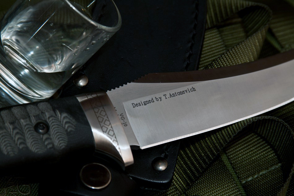 Модзю – нож сделанный в Японии и разработанный известным российским дизайнером и кузнецом Тимофеем Антоневичем. В конструкции ножа учтены требования российских стандартов, он не является холодным оружием. Получился практичный разделочный нож с интересной формой клинка. |