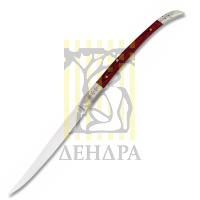 Накладки на рукоять этого большого ножа были выполнены из микарты - материала, не проводящего электрический ток, при этом обеспечивающий цепкий хват ножа в руках.