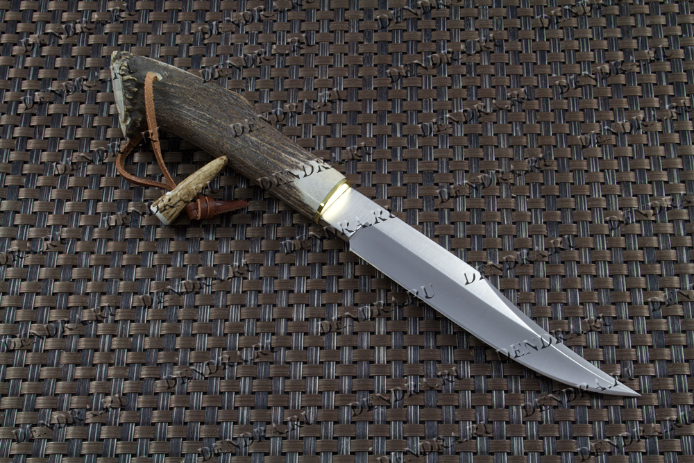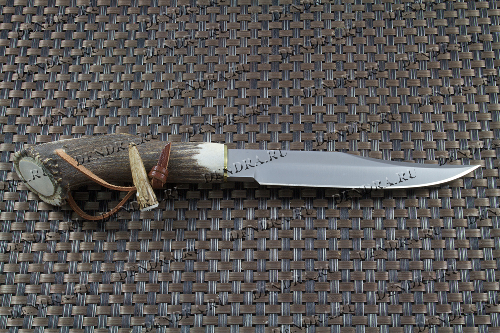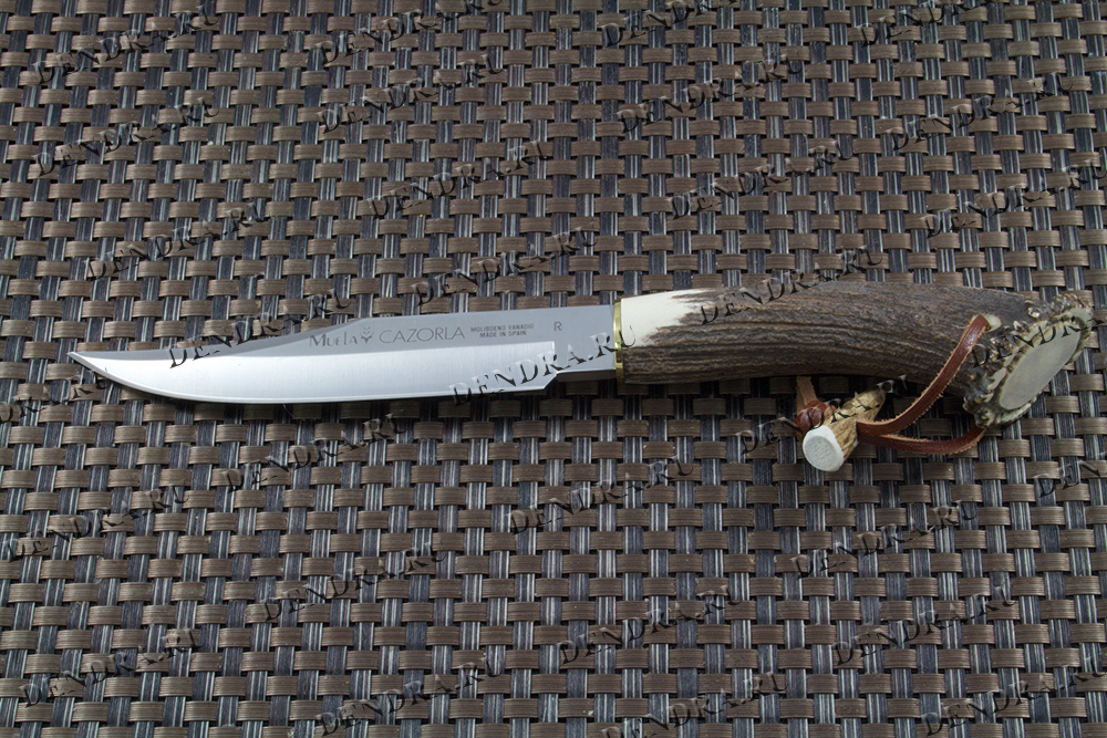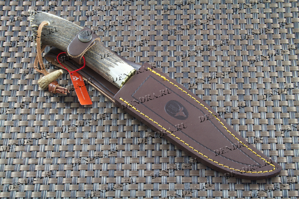 Нож "CAZ" с фикс клинком длиной 16 см, рукоять рог оленя с кроной, ножны кожа