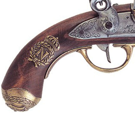 Изящное оружие c красивой гравировкой, повторяющей геральдику легендарного императора и полководца. Купить пистолет Наполеона от Грибоваля можно в подарок коллекционеру старинного оружия, просто любителю красивых вещей.