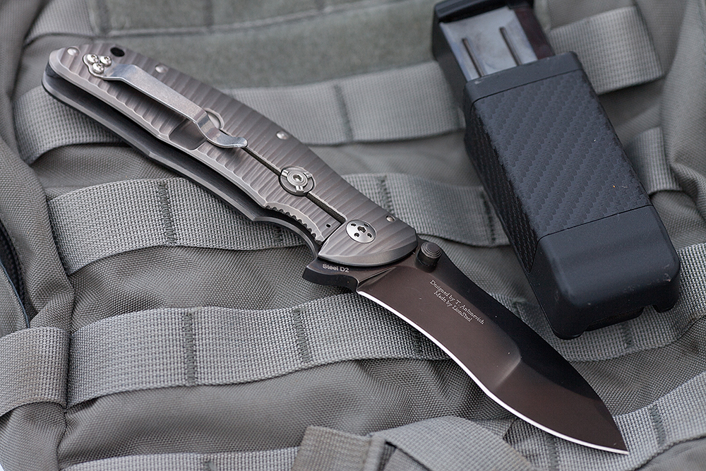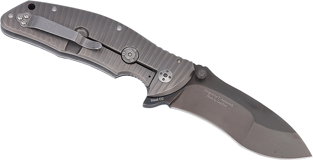 Для открывания ножа одной рукой на клинке размещены шпеньки под правую и левую руку в районе обуха, а в районе пятки клинка размещен так называемый флипер.