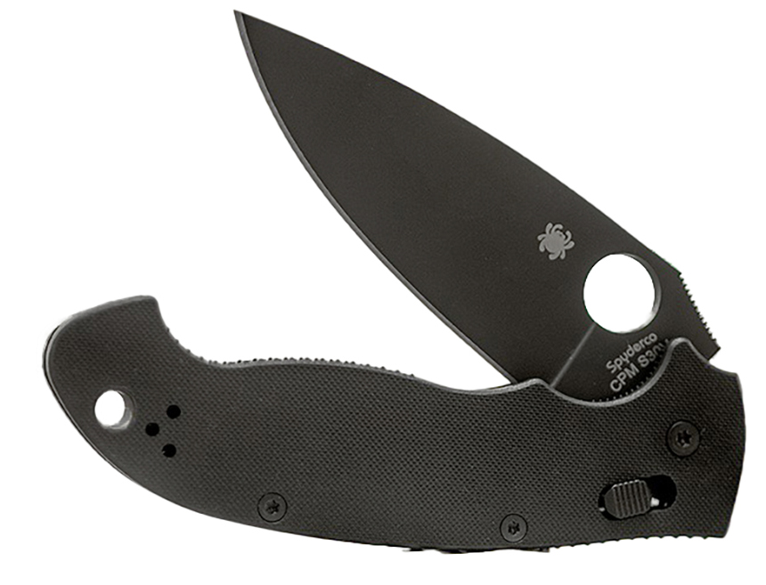 Spyderco Mannix 2XL Black - полностью черное обновление сверхбольшой версии ножа Mannix2. Замок - шарикоподшипниковый. Этот замок имеет подпружиненный подшипник (шарик) в полимерной камере.Он фиксирует клинок и позволяет быстро открывать нож.
