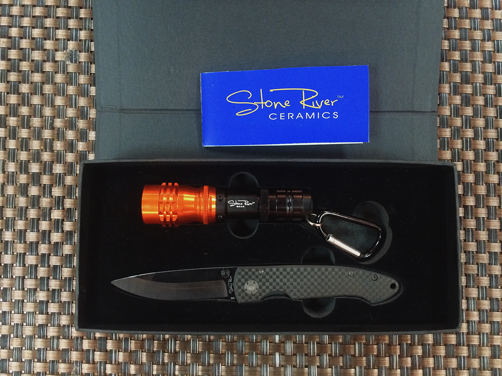 Подарочный набор из двух предметов: нож складной артикула SRG2CFL; карманный фонарь артикула SRG1TAF