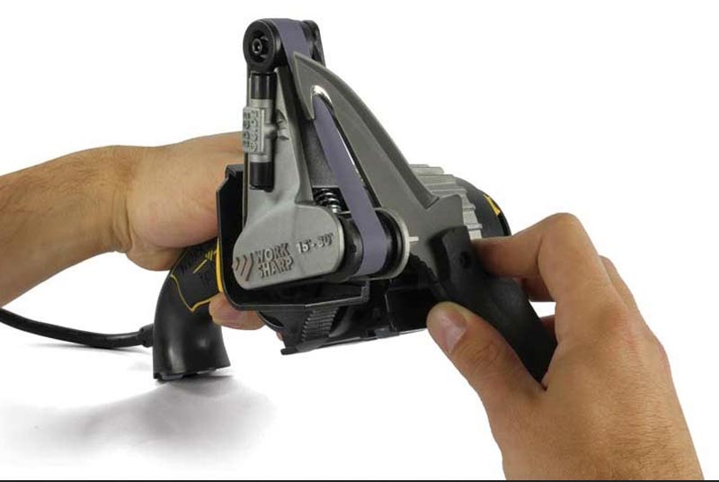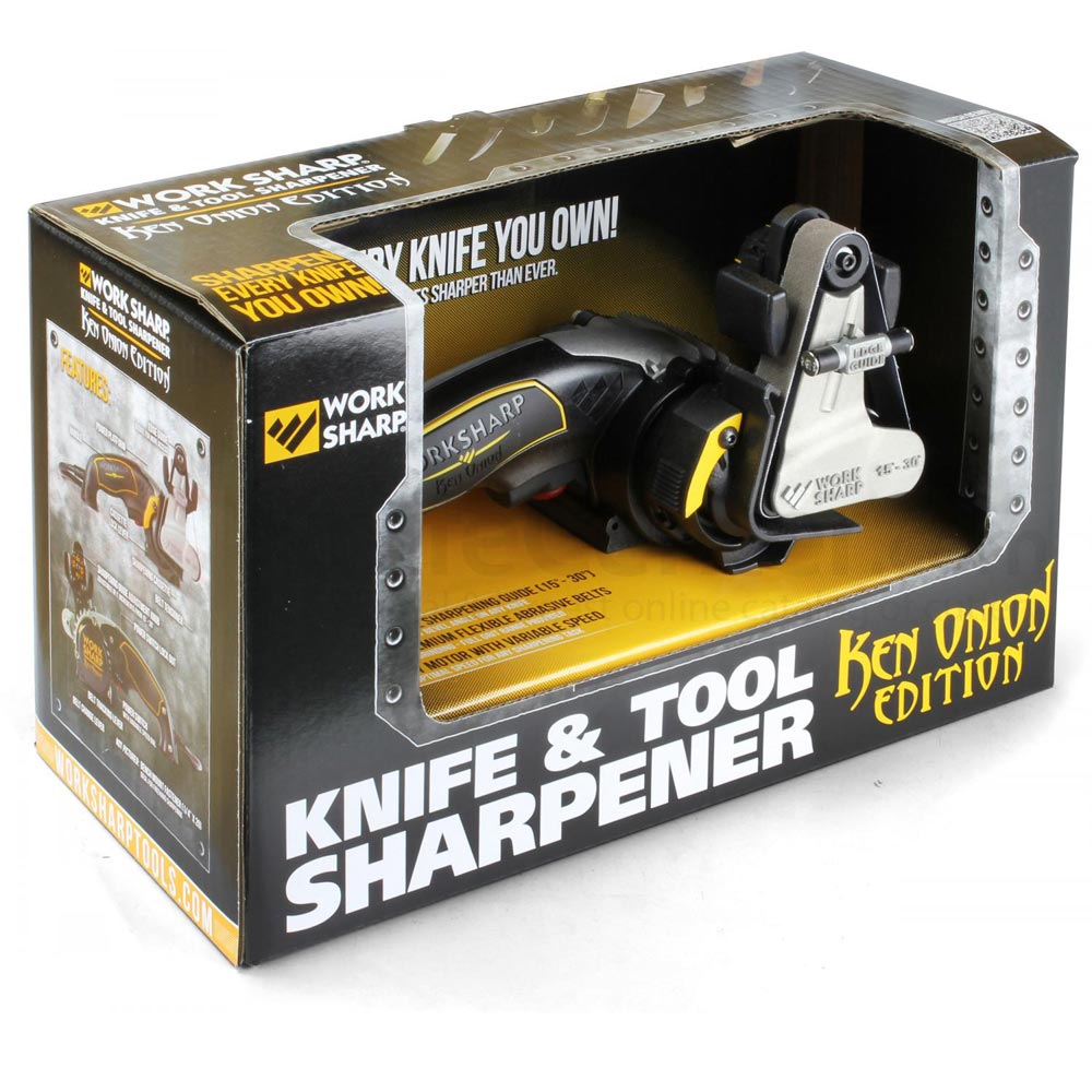 В новой точилке разработанной известным дизайнером ножей Кеном Онионом, увеличена ширина ленты, а ее новаторское крепление способствует более качественной заточке.