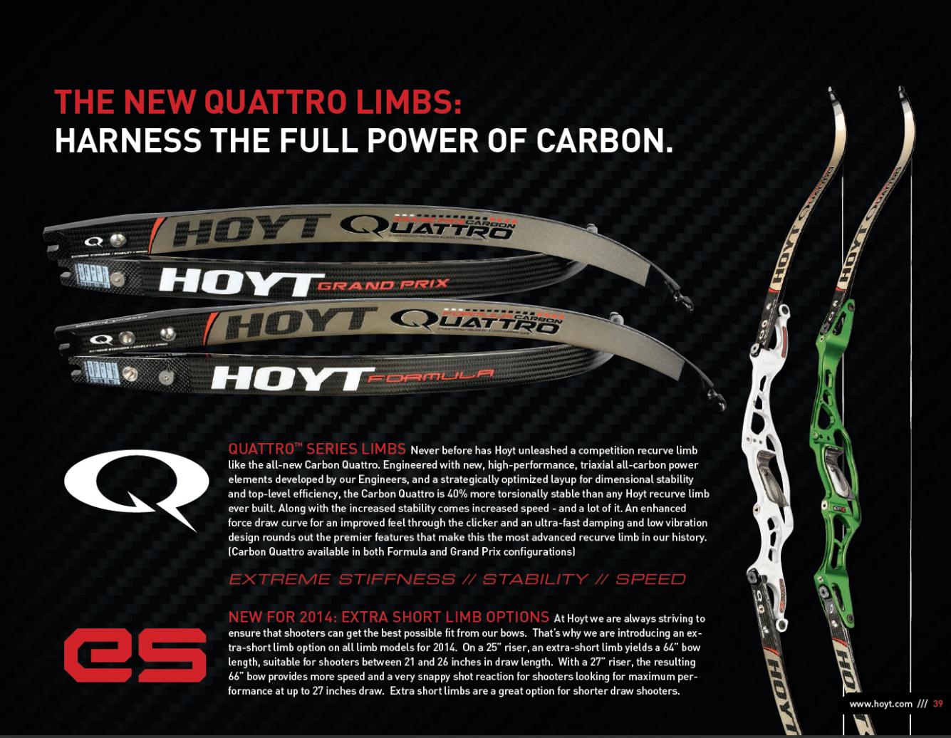 Новейшие луки Helical Flex Tune Carbon удивляют своей лёгкостью, новые плечи для рекурсивных луков Carbon Quattro демонстрируют более высокие показатели торсионной стабильности по сравнению с предшественниками.