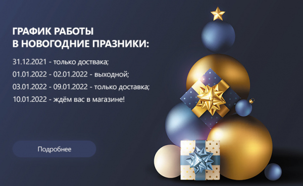 В период с 3 по 9 января возможна доставка по Москве и отправка в регионы, шоурум в эти дни не работает.