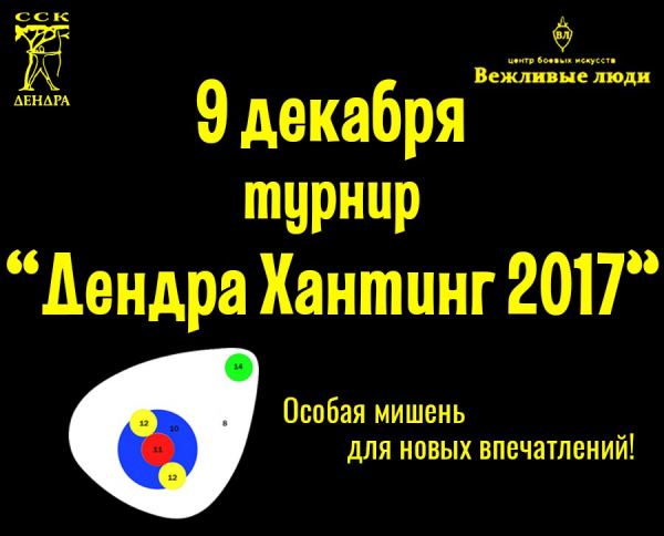 Предлагаем вам принять участие в турнире по стрельбе из лука «ДЕНДРА ХАНТИНГ», который состоится 9 декабря в нашем тире "Вежливые люди" по адресу: г.Москва, Сколковское шоссе 31,«СПОРТХИТ», 3 этаж